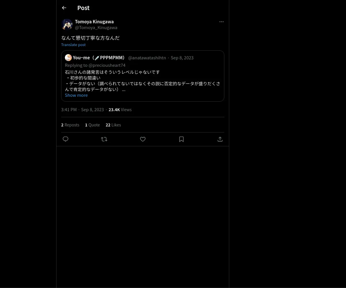 https://x.com:443/Tomoya_Kinugawa/status/1700036742307606589