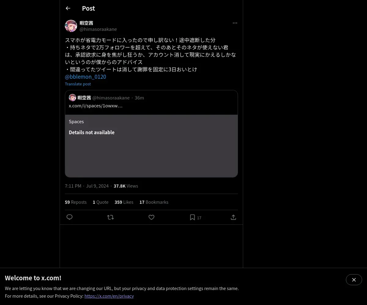 取得元URL: https://x.com:443/himasoraakane/status/1810617687242080385