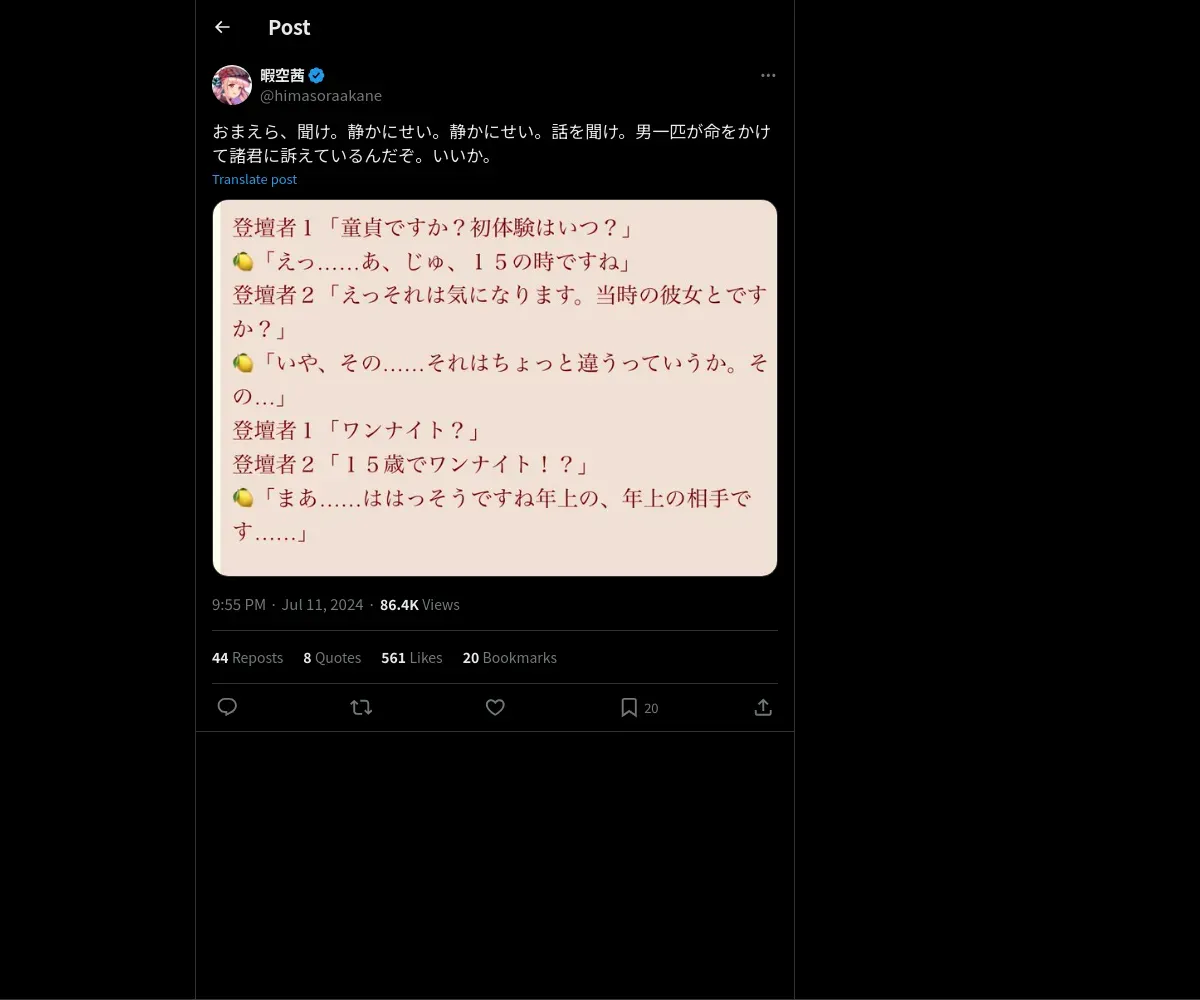 取得元URL: https://x.com:443/himasoraakane/status/1811383781896630488