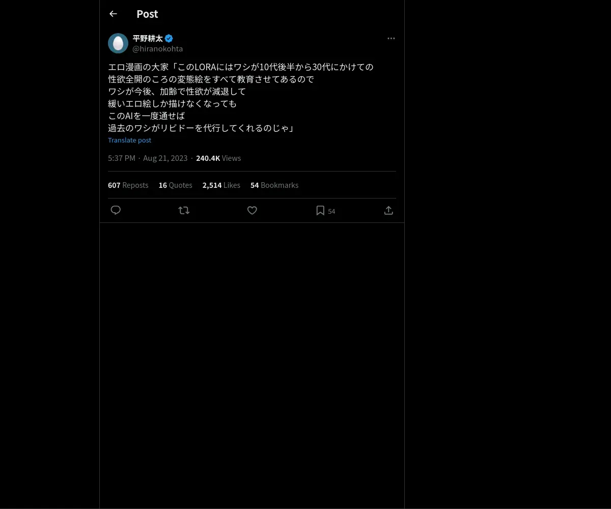 取得元URL: https://x.com:443/hiranokohta/status/1693542878927303063?t=6eQNa0VXGkD_37CqR-5jJA&s=19