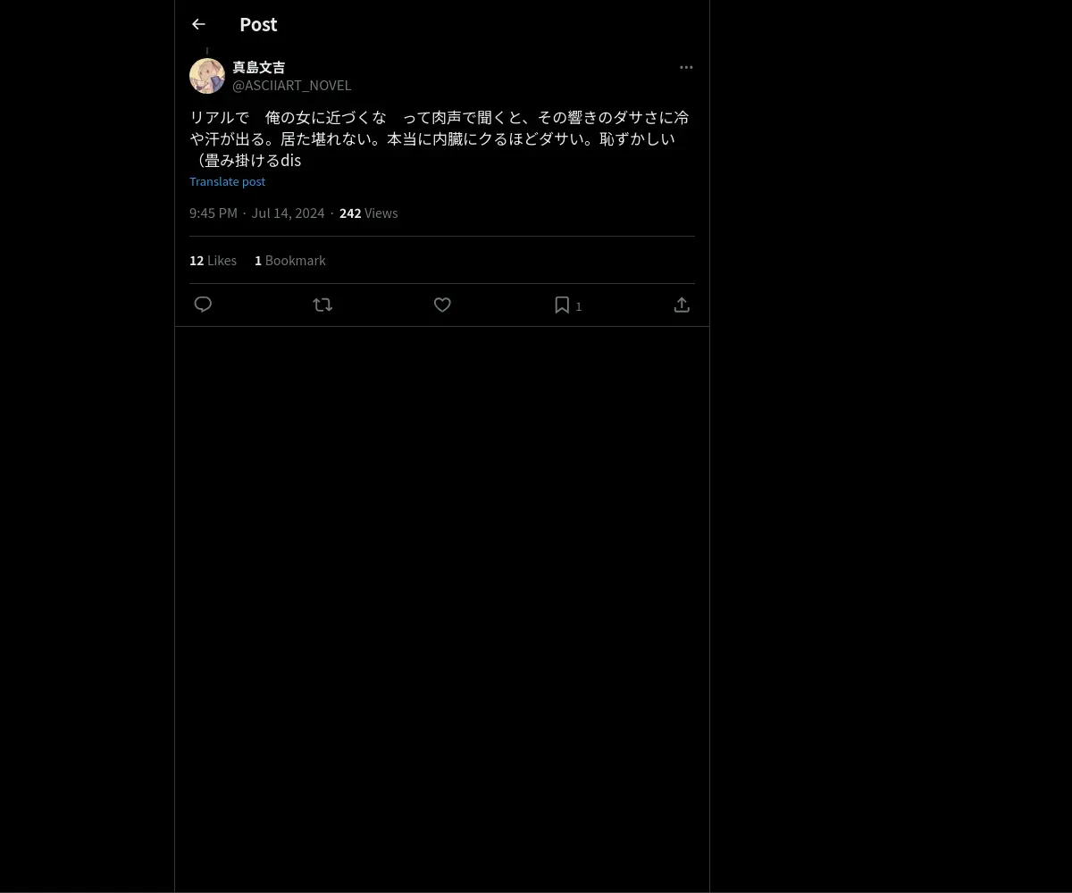取得元URL: https://x.com:443/ASCIIART_NOVEL/status/1812468533890363419