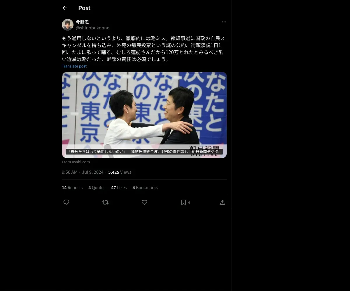 https://x.com:443/shinobukonno/status/1810478057859547514