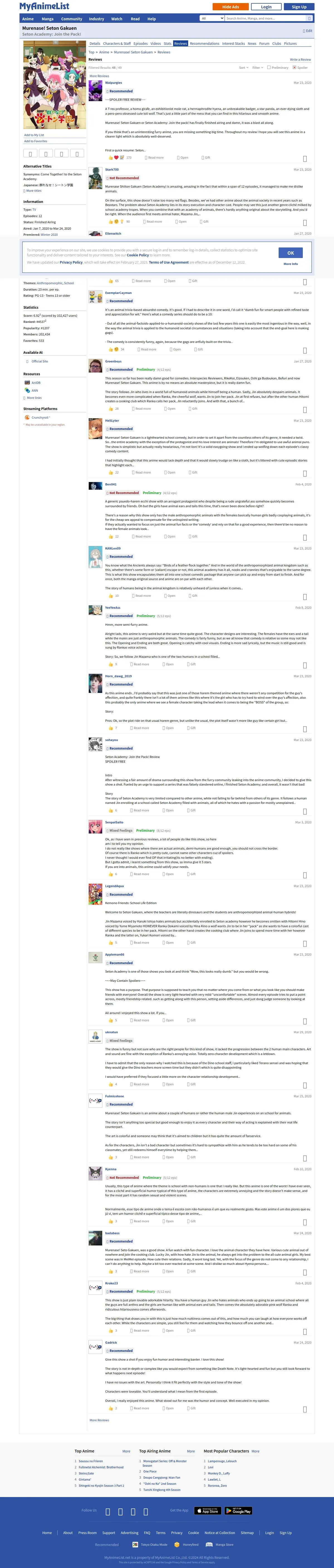 取得元URL: https://myanimelist.net:443/anime/40483/Murenase_Seton_Gakuen/reviews