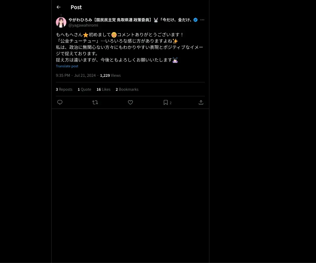 取得元URL: https://x.com:443/yagawahiromi/status/1815002716177064281