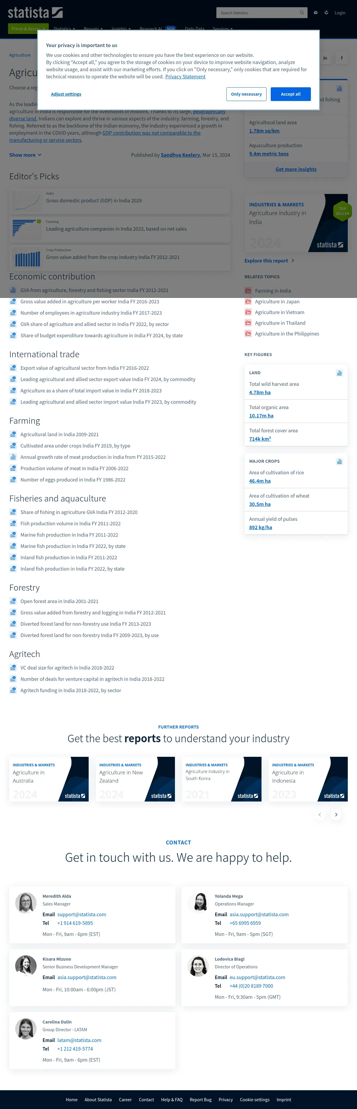 https://www.statista.com:443/topics/4868/agricultural-sector-in-india/
