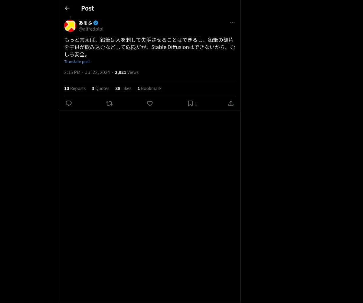 https://x.com:443/alfredplpl/status/1815254265637781839