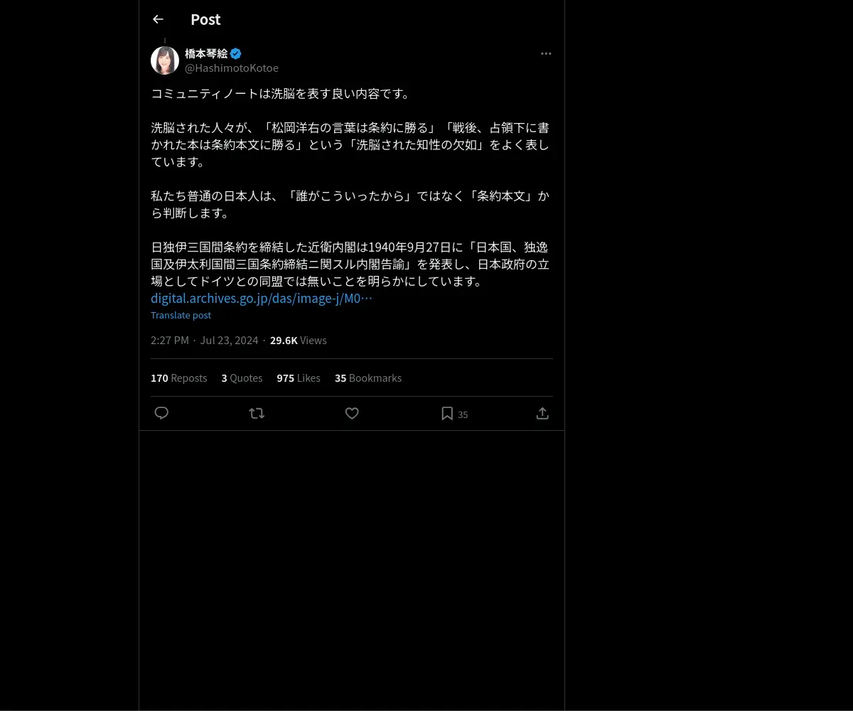 https://x.com:443/HashimotoKotoe/status/1815619846794883186