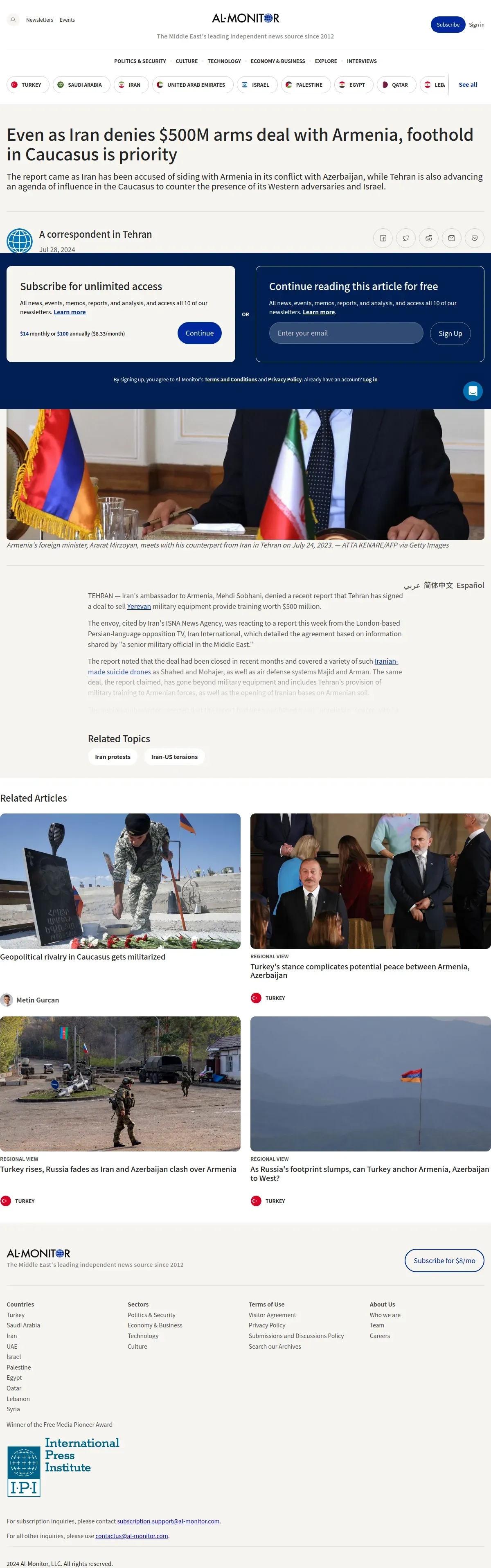 https://www.al-monitor.com:443/originals/2024/07/even-iran-denies-500m-arms-deal-armenia-foothold-caucasus-priority