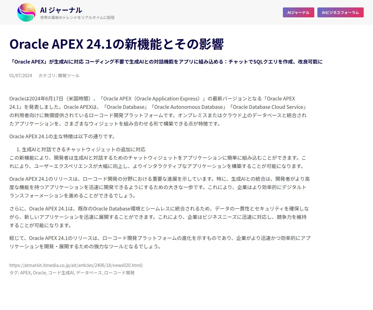 https://www.aiforum.asto-system.co.jp:443/news/oracle-apex-24-1%E3%81%AE%E6%96%B0%E6%A9%9F%E8%83%BD%E3%81%A8%E3%81%9D%E3%81%AE%E5%BD%B1%E9%9F%BF/
