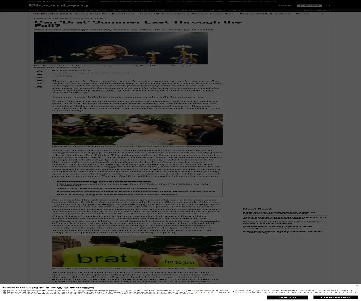 https://www.bloomberg.com:443/news/newsletters/2024-07-24/brat-summer-spreads-from-charli-xcx-to-kamala-harris-s-campaign-memes