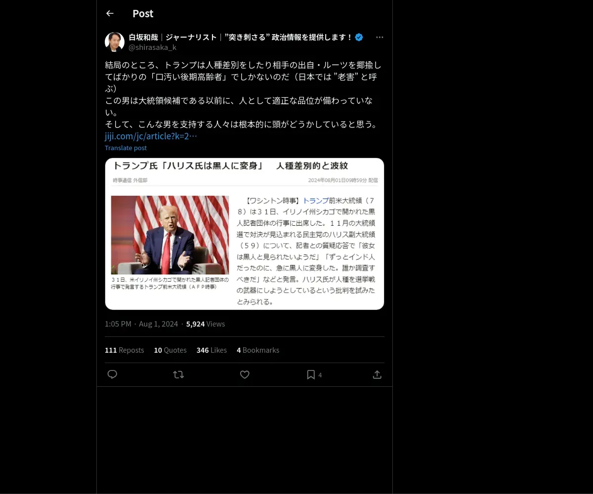 取得元URL: https://x.com:443/shirasaka_k/status/1818860642046190025
