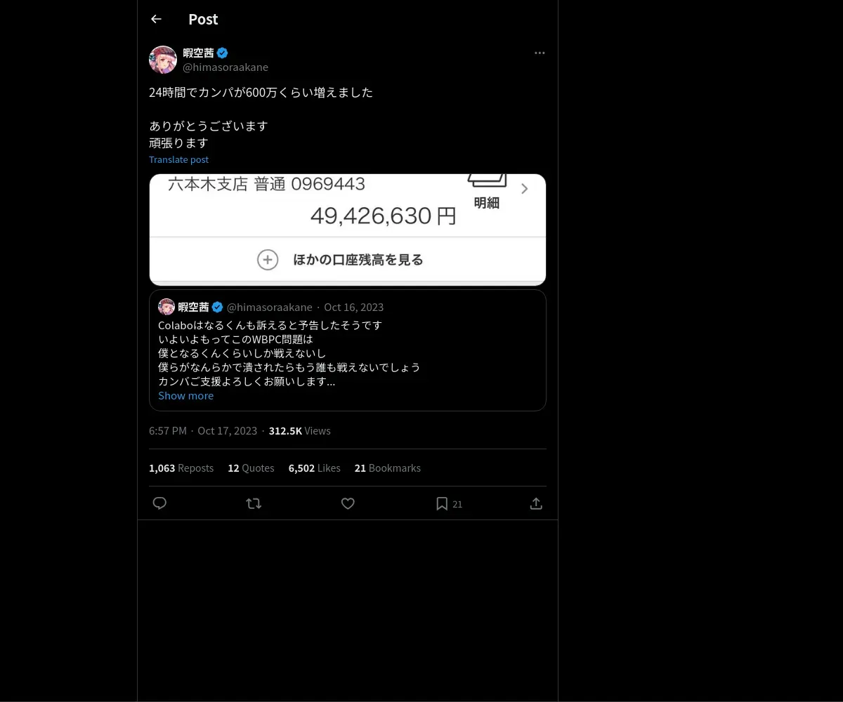 取得元URL: https://x.com:443/himasoraakane/status/1714218953713815579