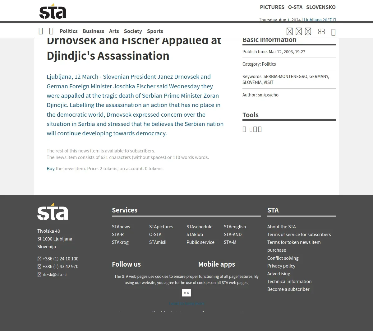 https://english.sta.si:443/718110/drnovsek-and-fischer-appalled-at-djindjics-assassination