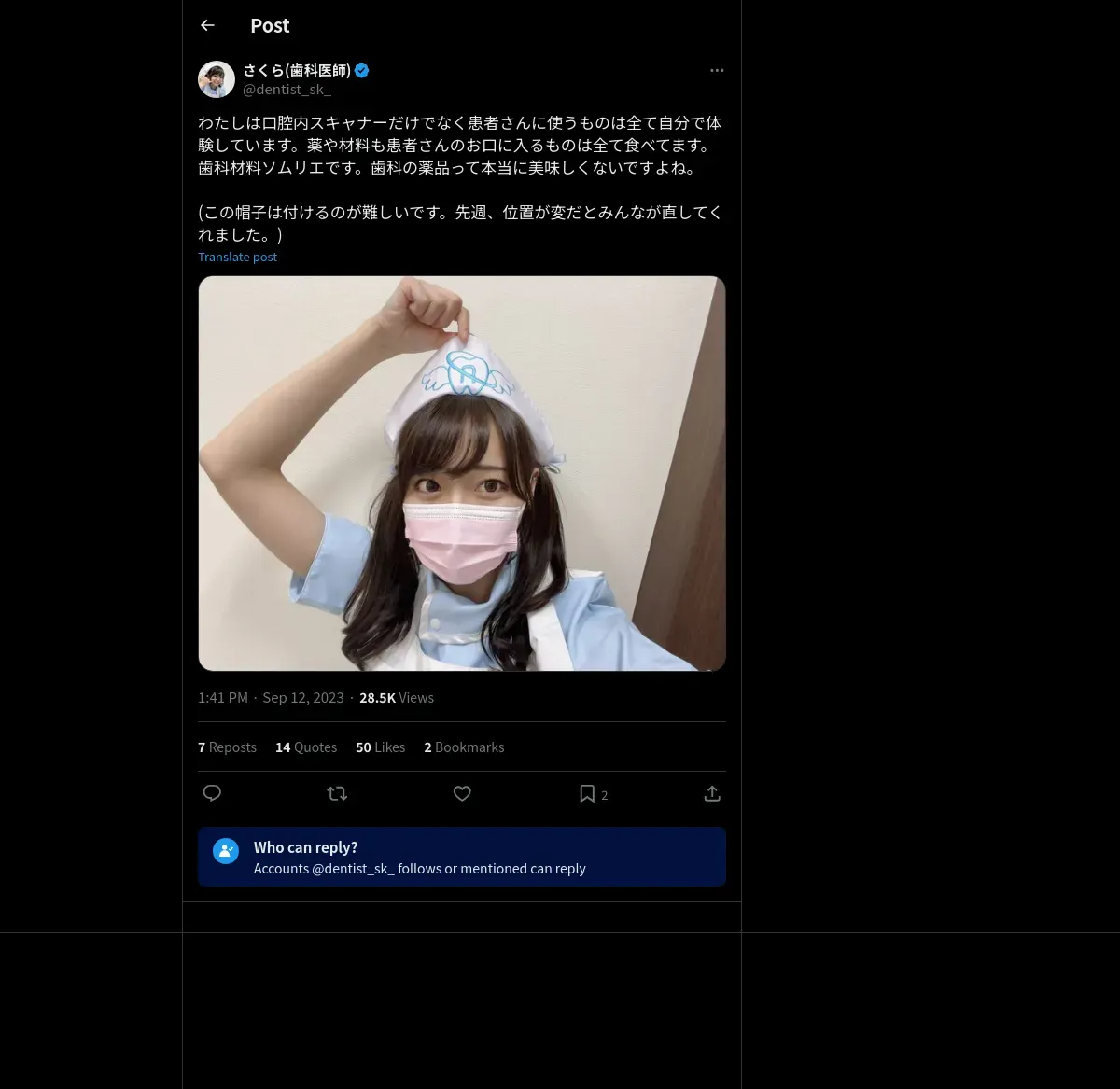 取得元URL: https://x.com:443/dentist_sk_/status/1701456038594253150