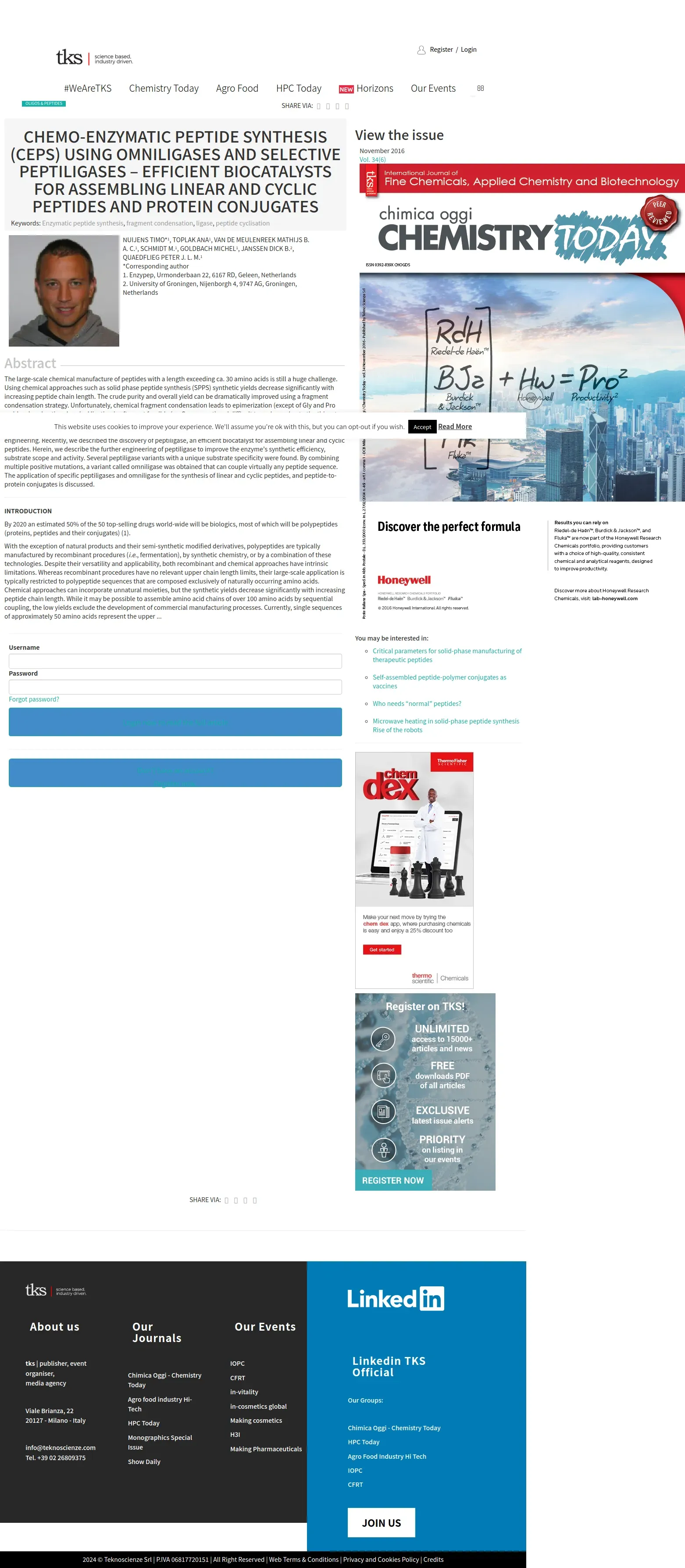 https://www.teknoscienze.com:443/tks_article/chemo-enzymatic-peptide-synthesis-ceps-using-omniligases-and-selective-peptiligases-efficient-biocatalysts-for-assembling-linear-and-cyclic-peptides-and-protein-conjugates/