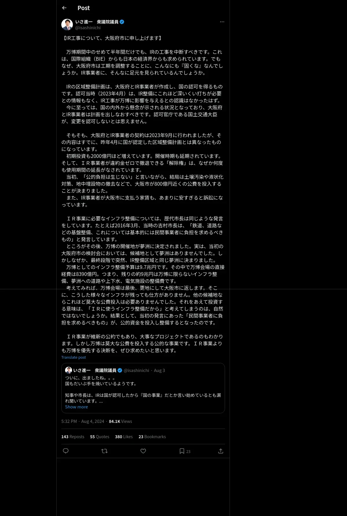 https://x.com:443/isashinichi/status/1820015044010348965