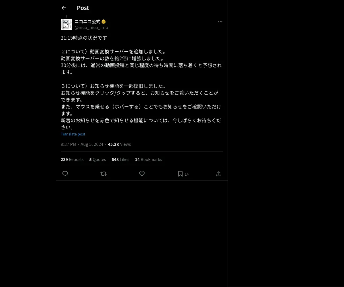 取得元URL: https://x.com:443/nico_nico_info/status/1820439035917271194