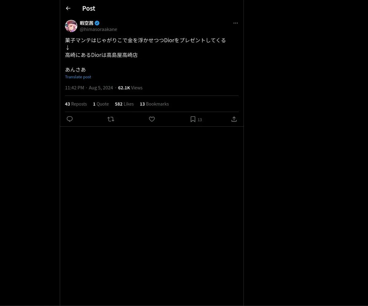 https://x.com:443/himasoraakane/status/1820470429439705350