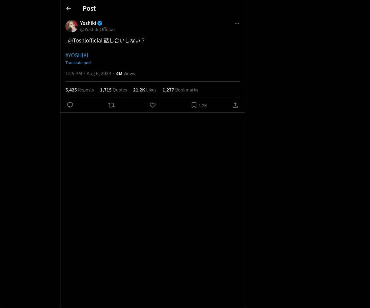 https://x.com:443/YoshikiOfficial/status/1820677517470261655?t=CLH8aBIFmNIdJi5eiyCXZg&s=19