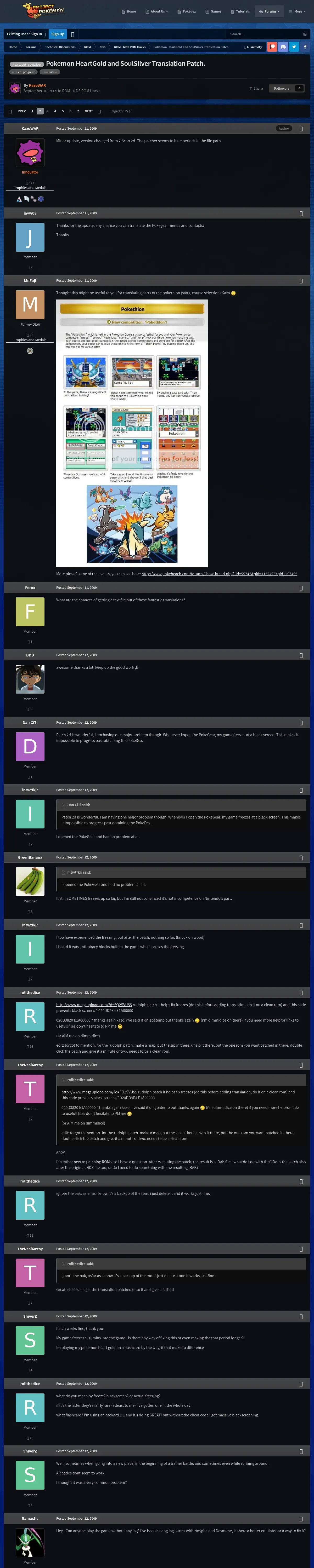 https://projectpokemon.org:443/home/forums/topic/4019-pokemon-heartgold-and-soulsilver-translation-patch/page/2/