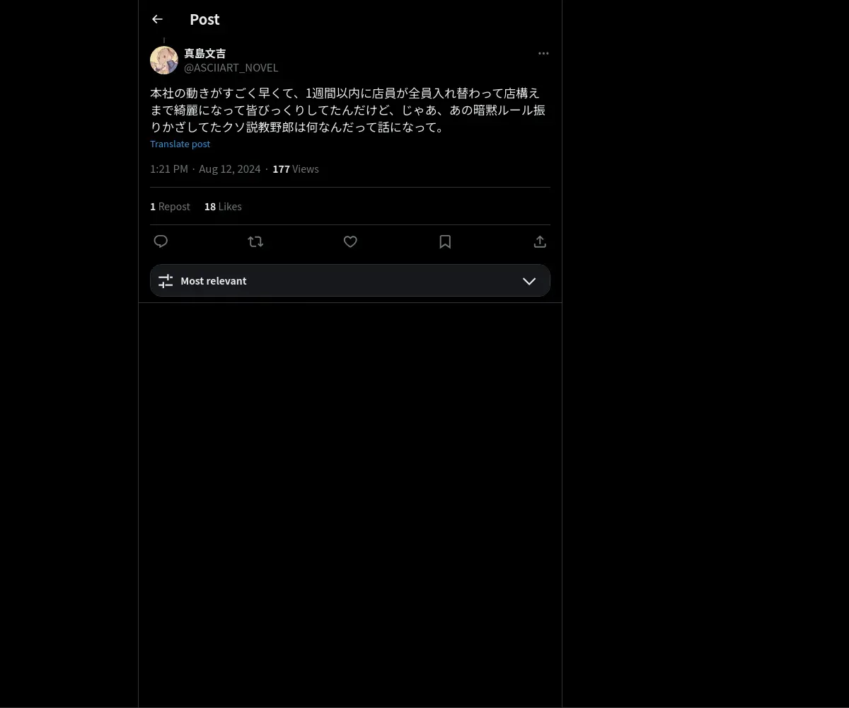 https://x.com:443/ASCIIART_NOVEL/status/1822850925020827822