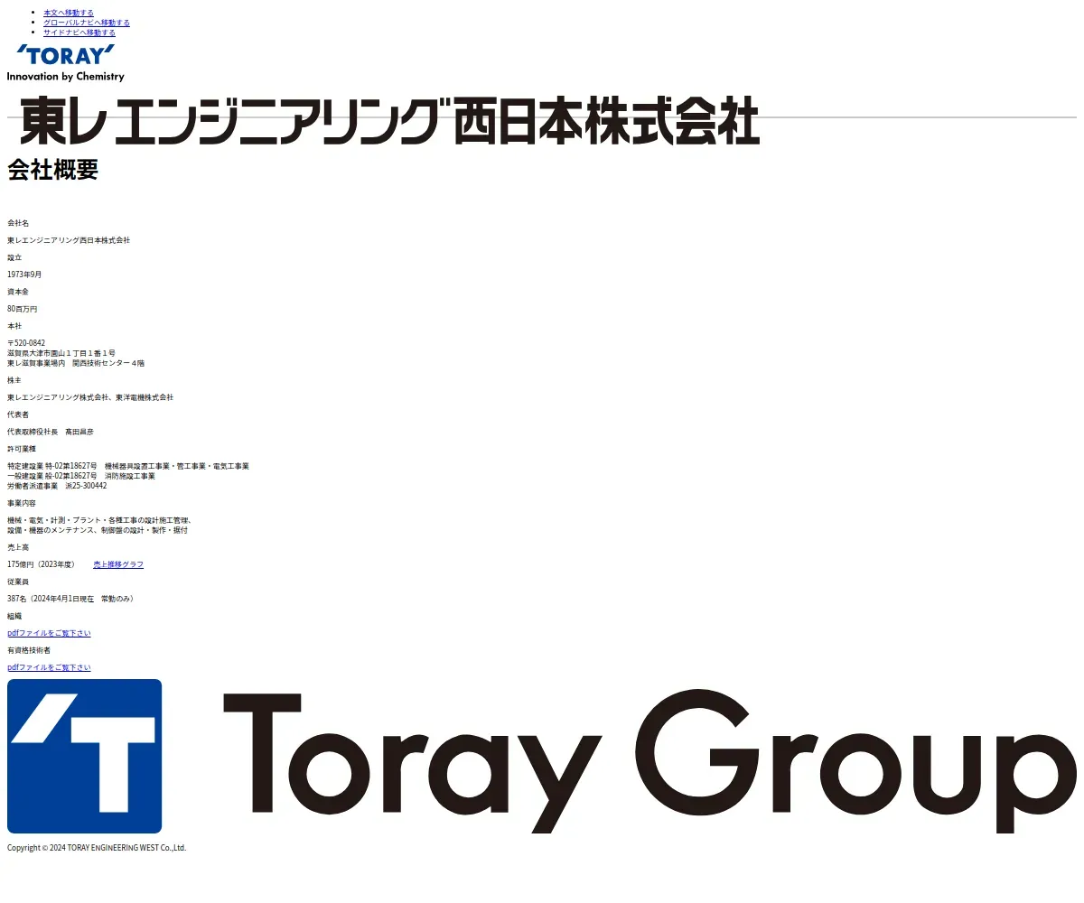 https://www.toray-eng.co.jp:443/west/corporate/index.html