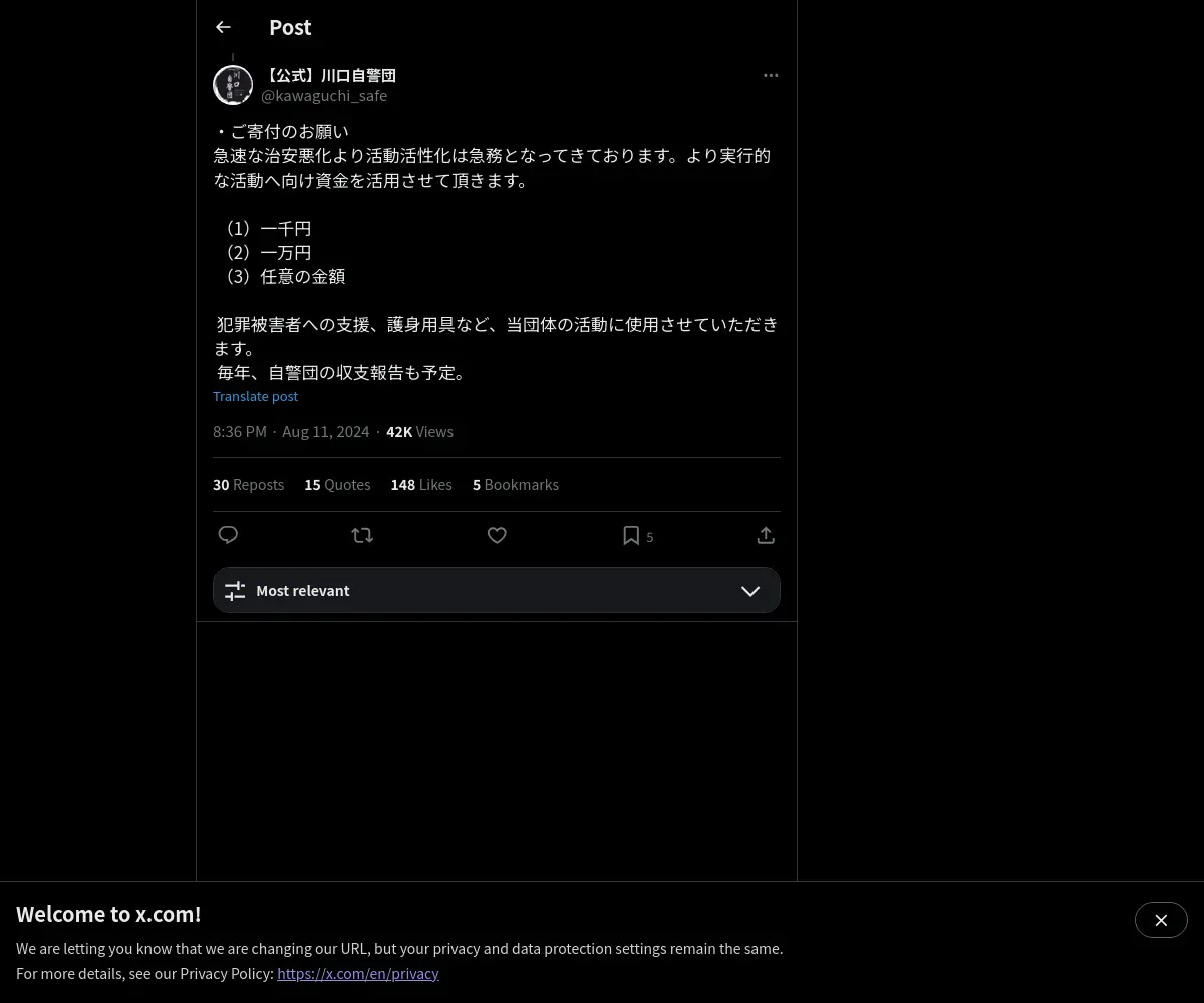 https://x.com:443/kawaguchi_safe/status/1822597977275256985