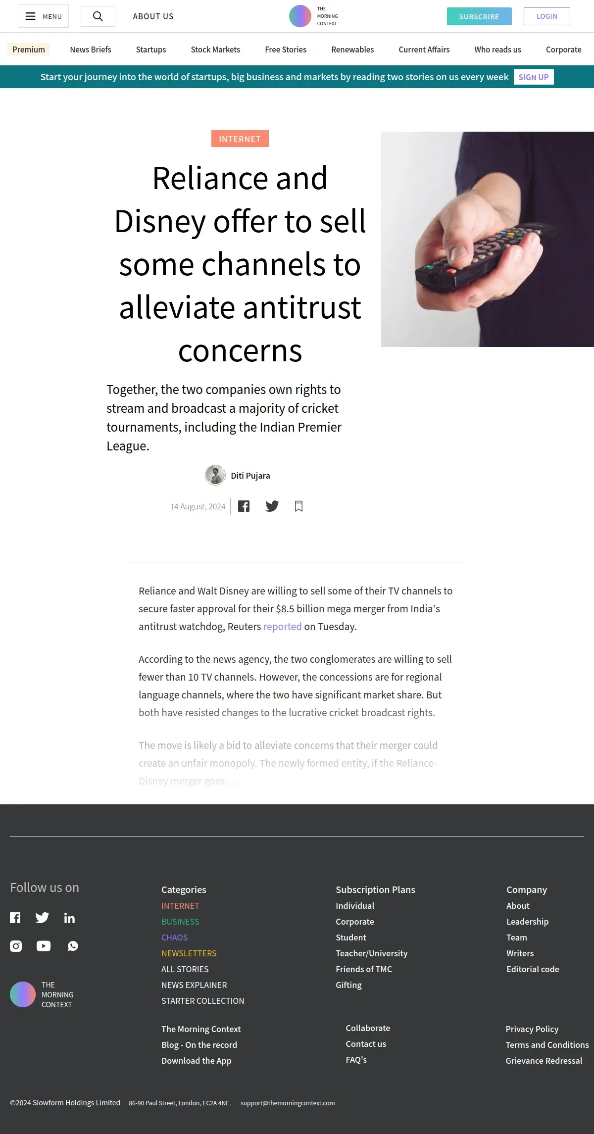 https://themorningcontext.com:443/internet/reliance-and-disney-offer-to-sell-some-channels-to-alleviate-antitrust-concerns