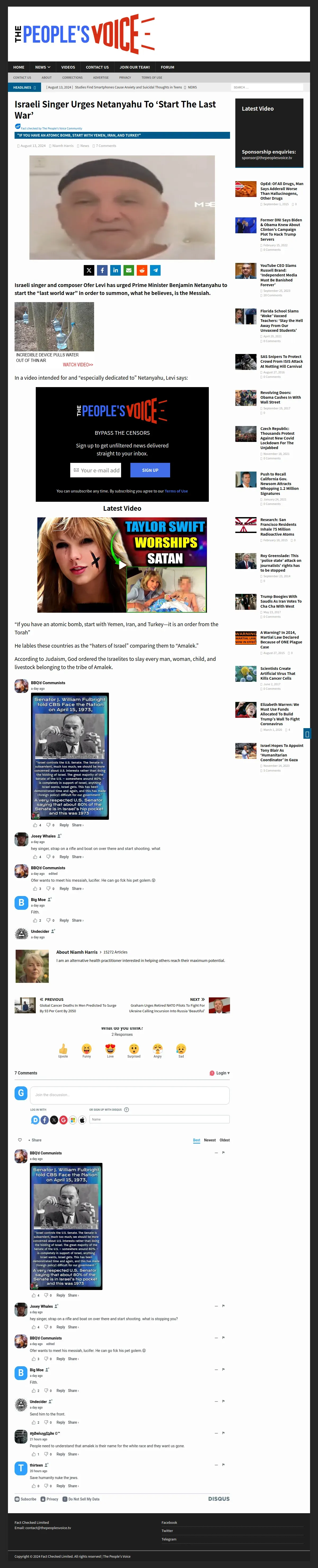 https://thepeoplesvoice.tv:443/israeli-singer-urges-netanyahu-to-start-the-last-war/