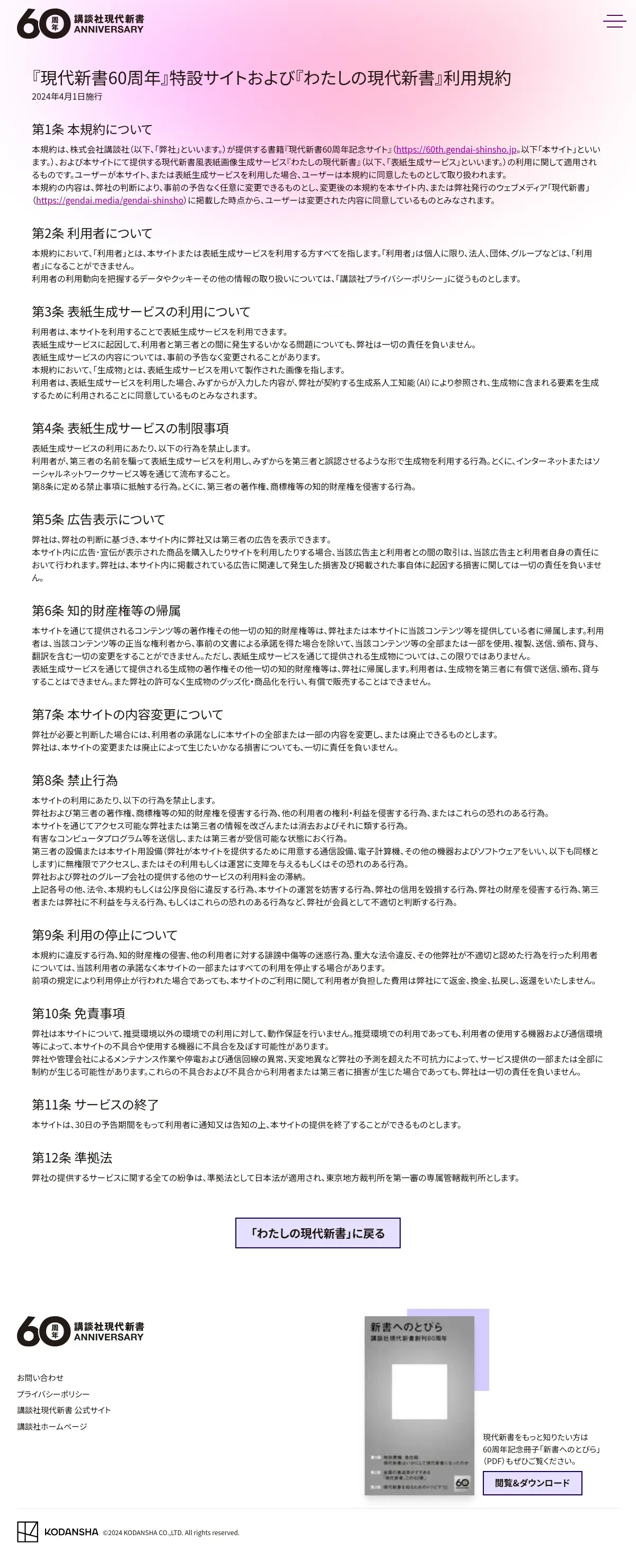 https://60th.gendai-shinsho.jp:443/maker/terms