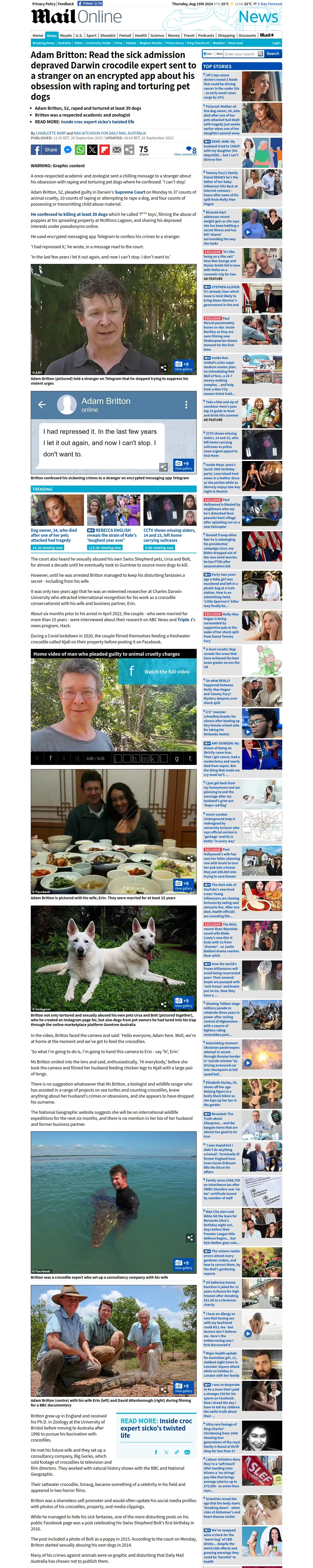 取得元URL: https://www.dailymail.co.uk:443/news/article-12561911/Adam-Britton-dog-sick-admission-Telegram.html