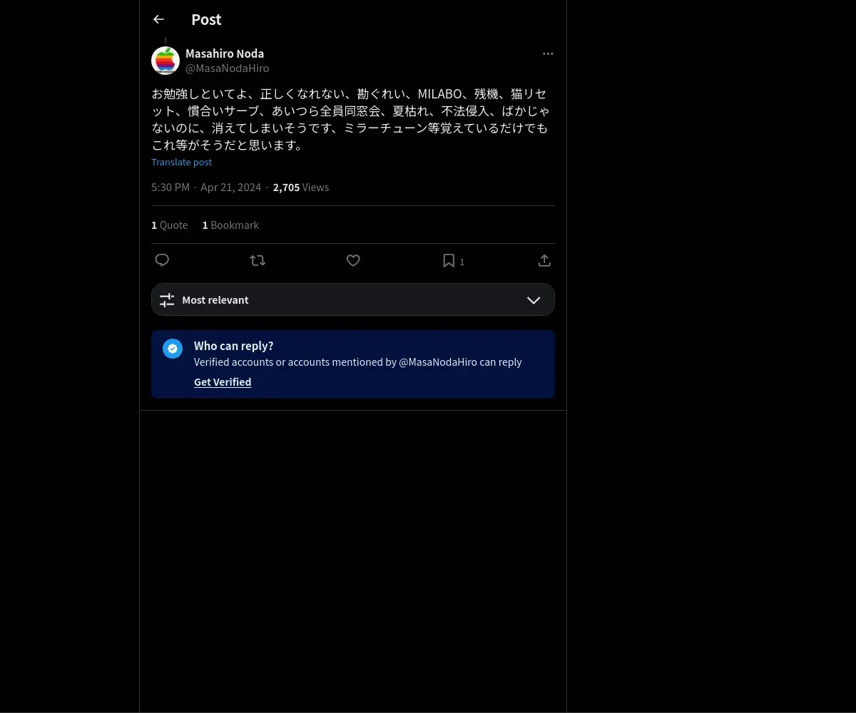 https://x.com:443/MasaNodaHiro/status/1781963727765639659
