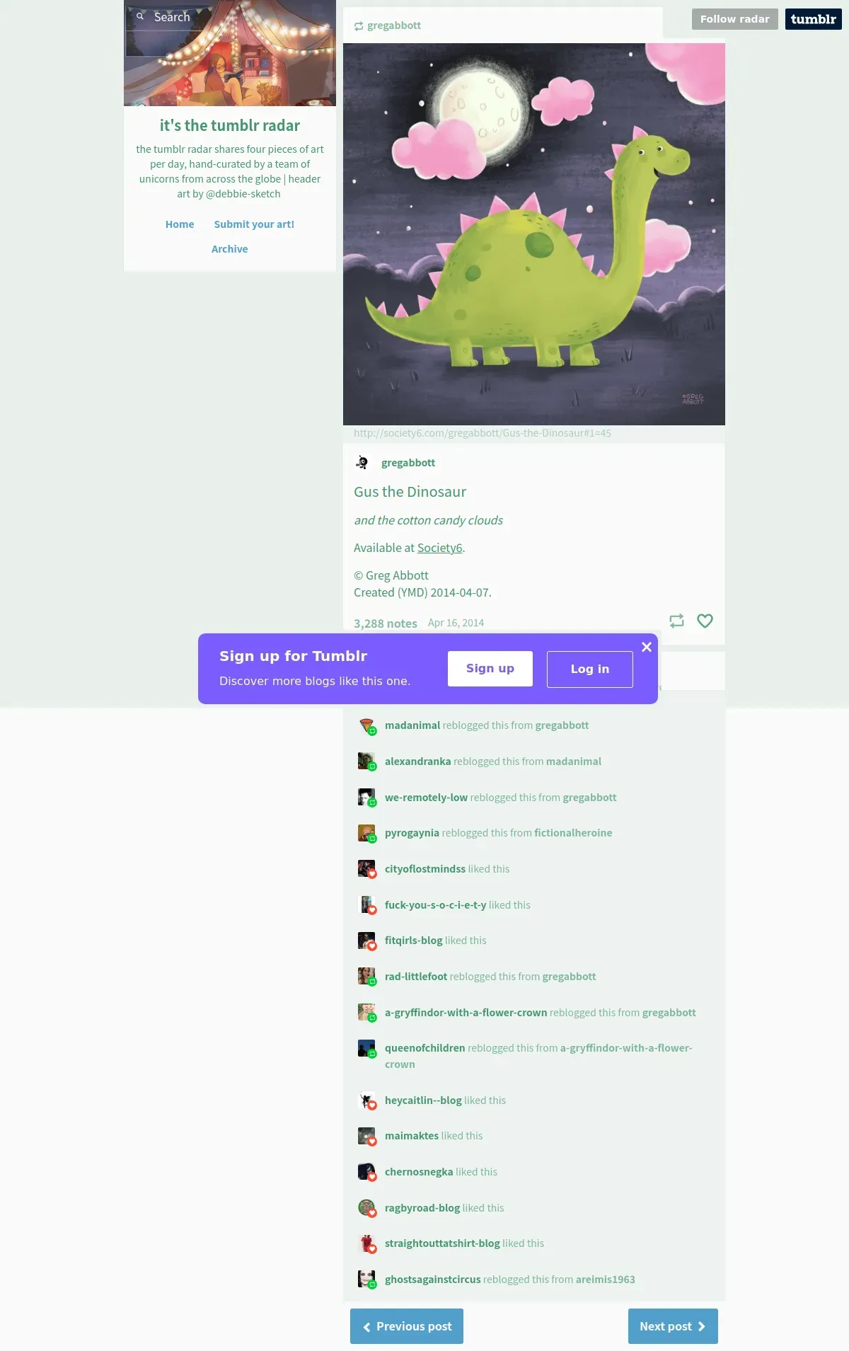 https://radar.tumblr.com:443/post/82915964460/gregabbott-gus-the-dinosaur-and-the-cotton