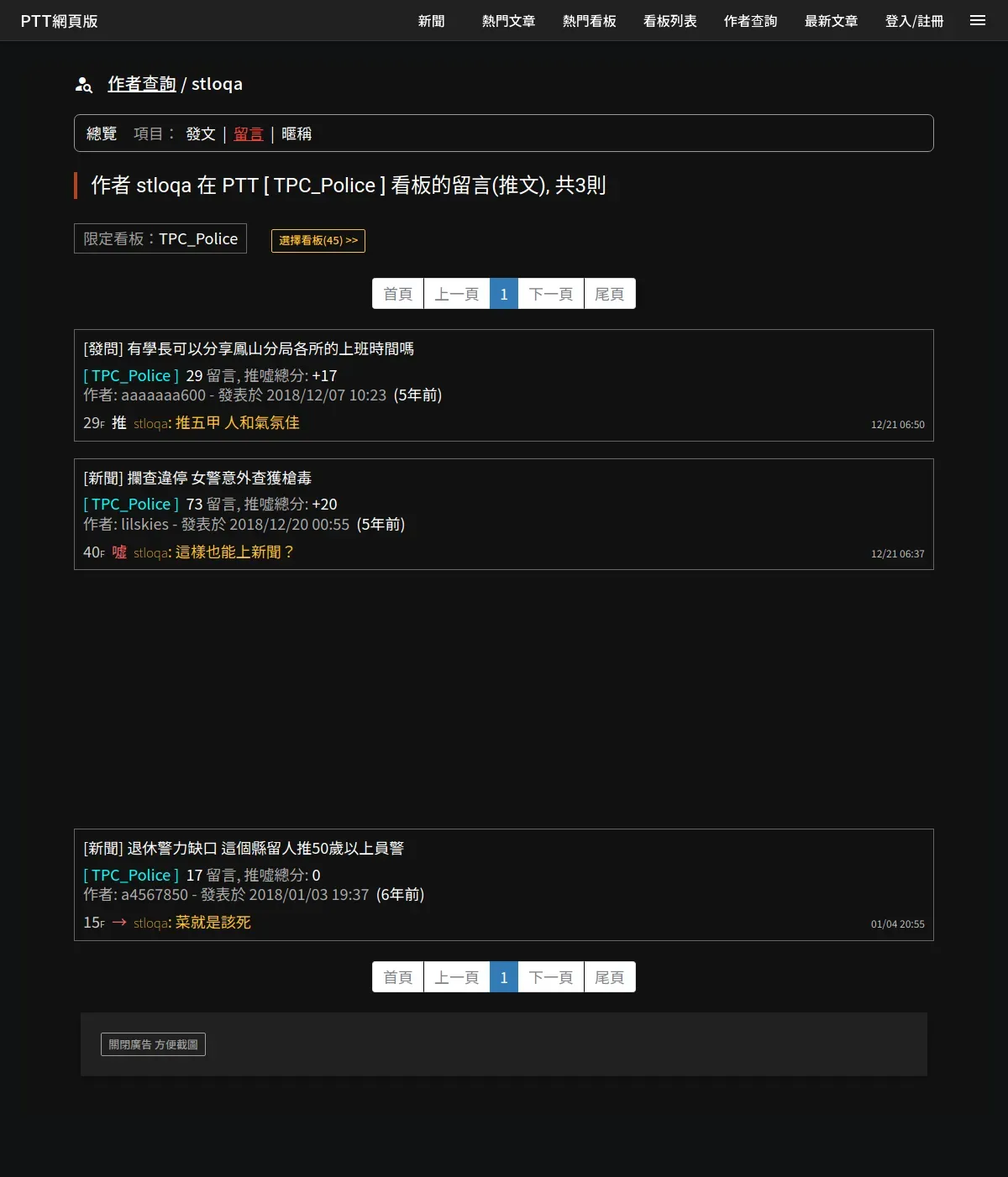 https://www.pttweb.cc:443/user/stloqa/tpc_police?t=message