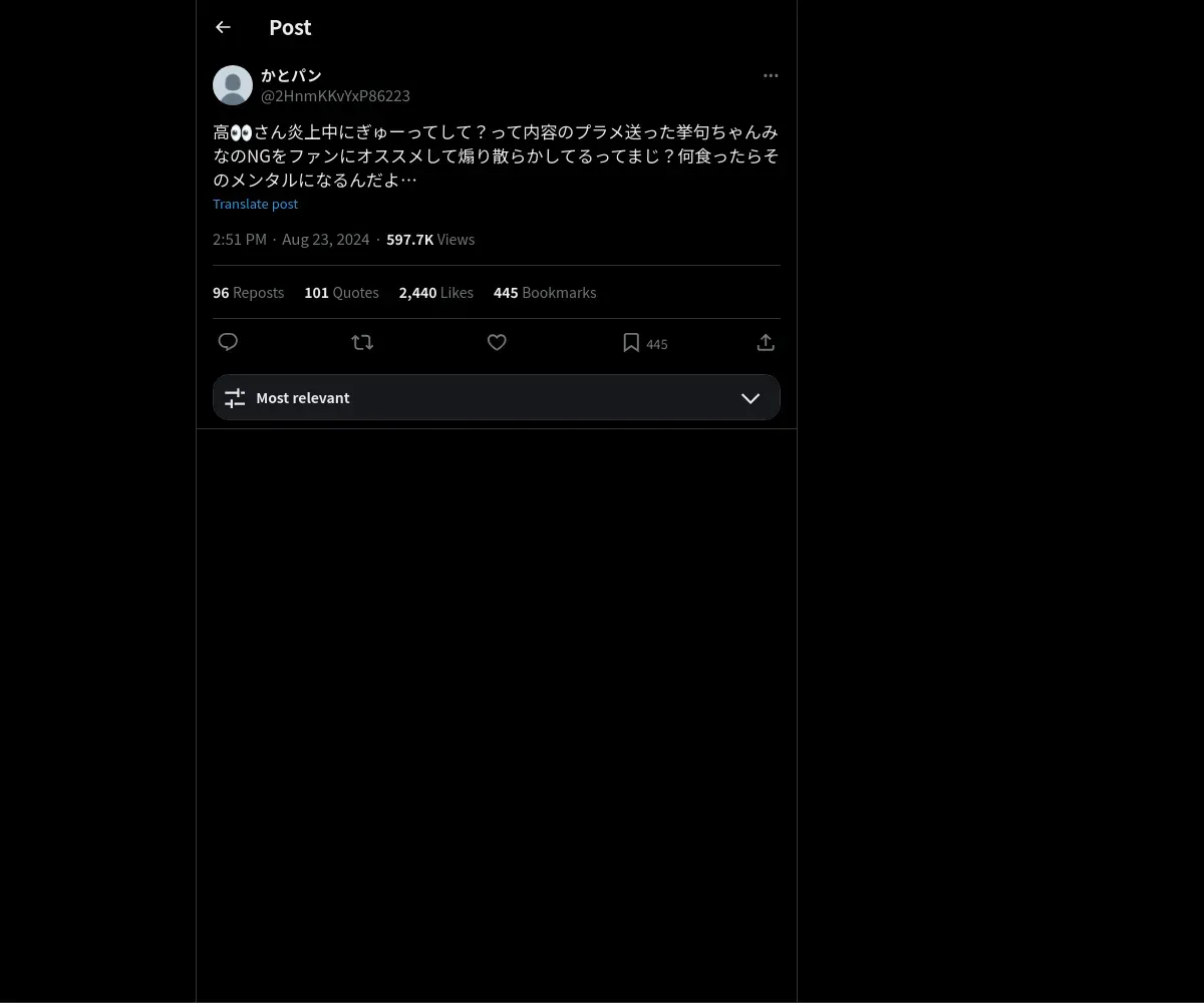取得元URL: https://x.com:443/2HnmKKvYxP86223/status/1826859727890120718