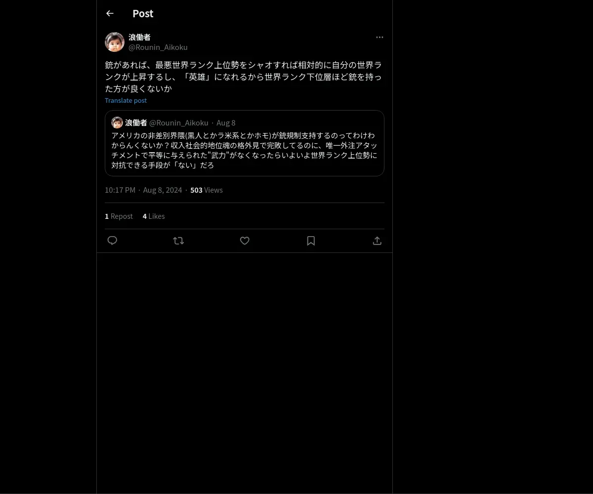 https://x.com:443/Rounin_Aikoku/status/1821536185174708460