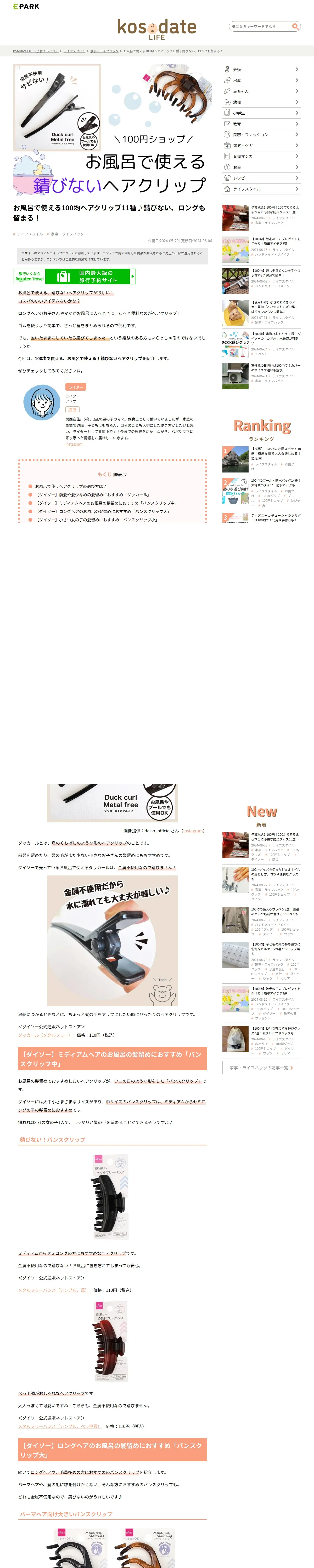 https://epark.jp:443/kosodate/enjoylife/m-100yen-bath-hair-clip_105996/