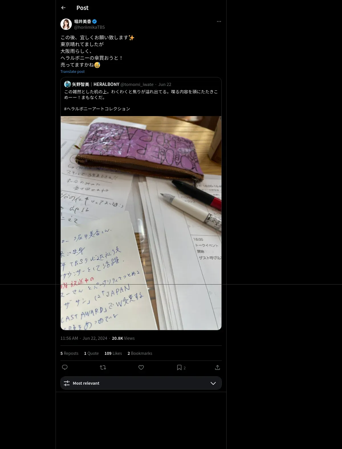 https://x.com:443/horiimikaTBS/status/1804347725317869905