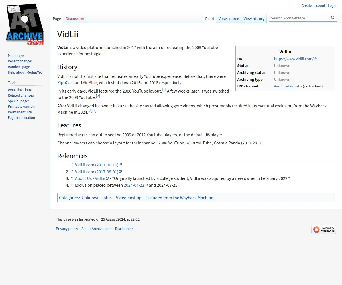 取得元URL: https://wiki.archiveteam.org:443/index.php/VidLii