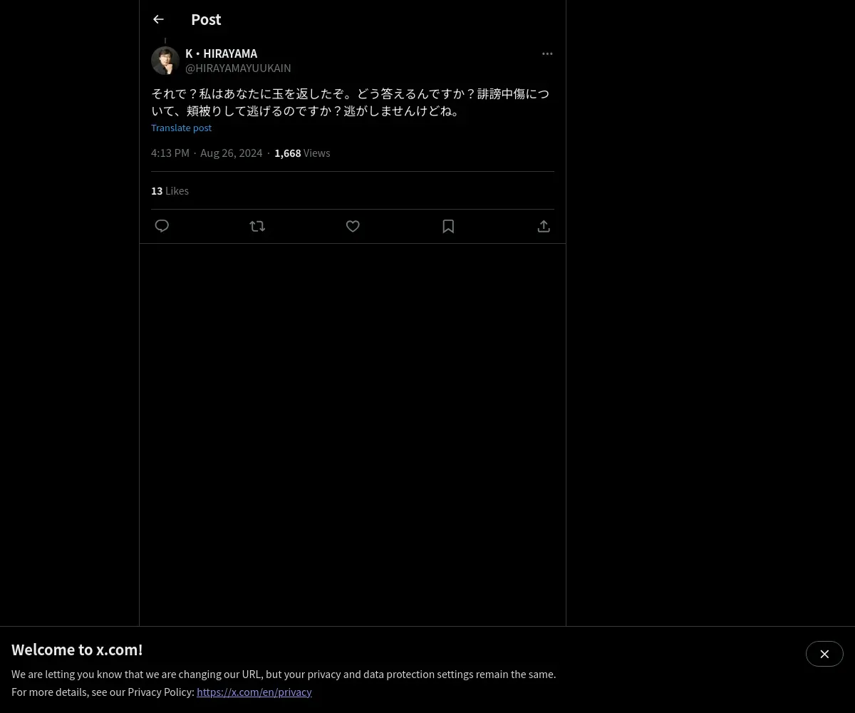 取得元URL: https://x.com:443/HIRAYAMAYUUKAIN/status/1827967635624989181