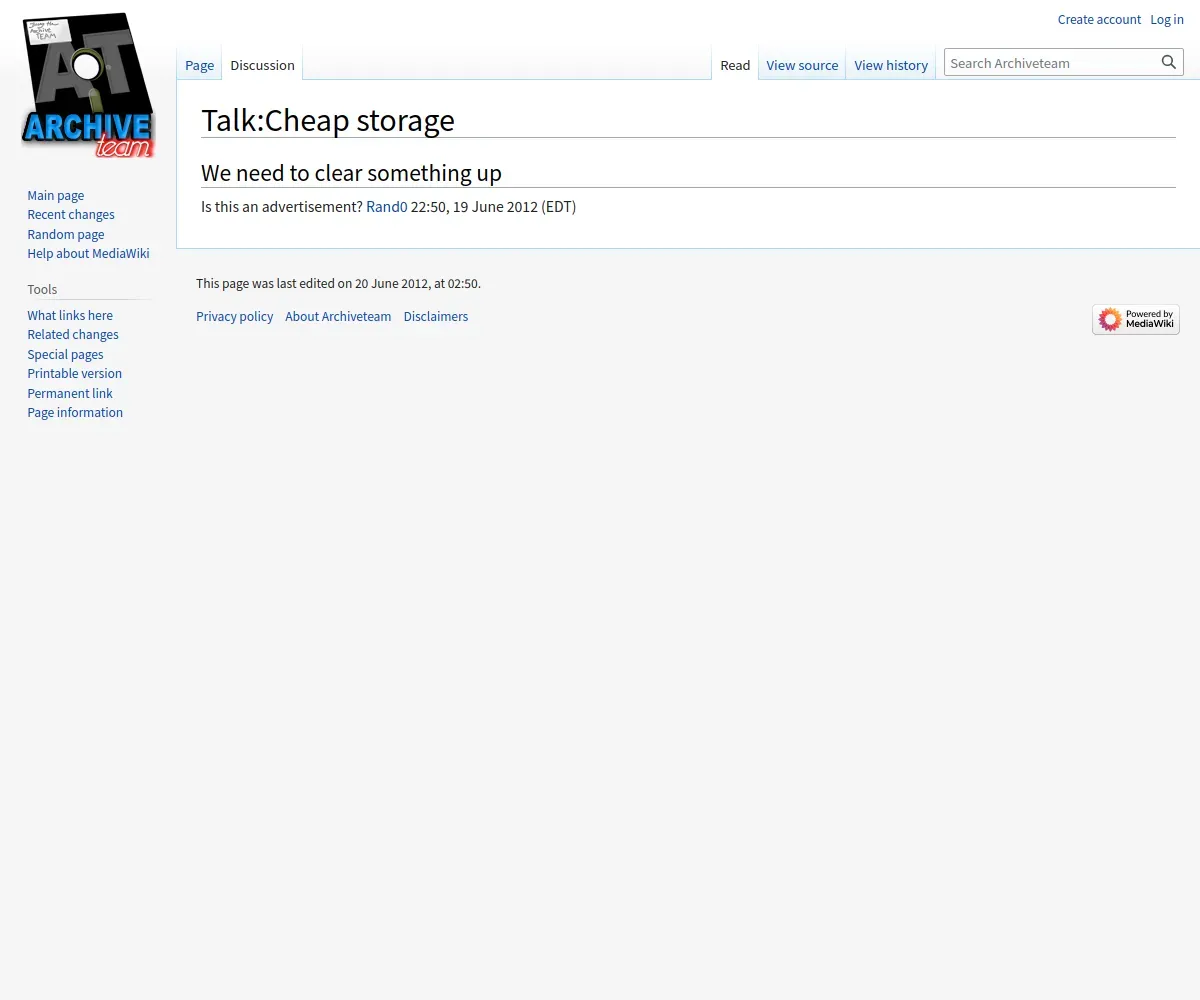 https://wiki.archiveteam.org:443/index.php/Talk:Cheap_storage