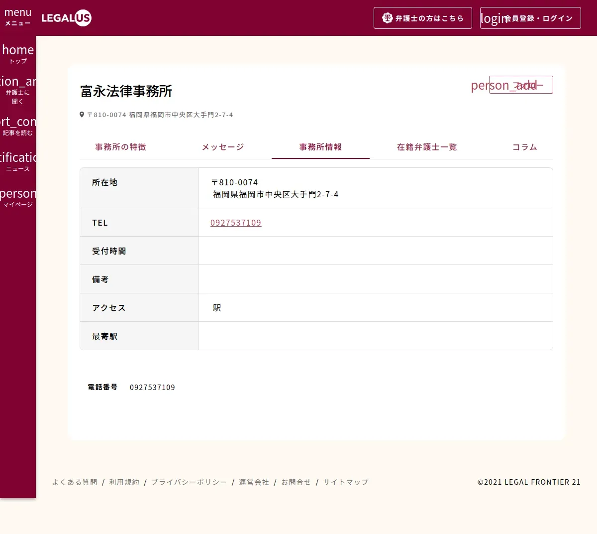 https://legalus.jp:443/office/1f671199-e575-4636-8dd9-0b86923e71f5?tab=information