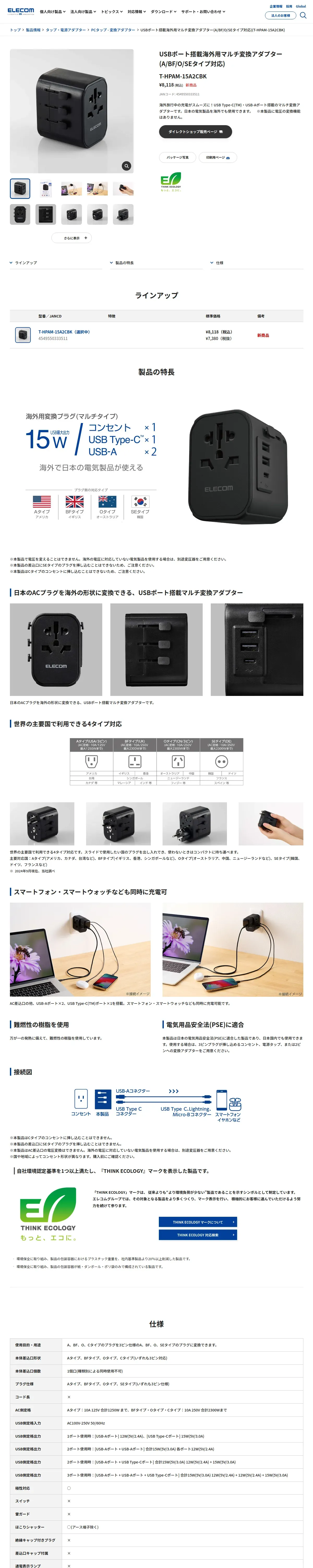 https://www.elecom.co.jp:443/products/T-HPAM-15A2CBK.html