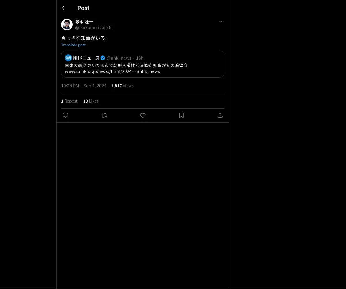 取得元URL: https://x.com:443/tsukamotosoichi/status/1831322478796517768