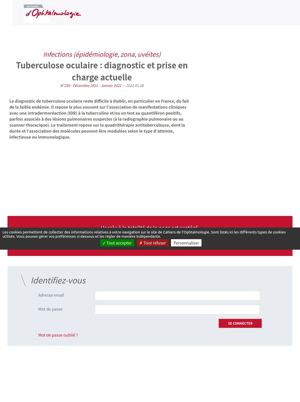 https://www.cahiers-ophtalmologie.fr:443/tuberculose-oculaire-diagnostic-et-prise-en-charge-actuelle