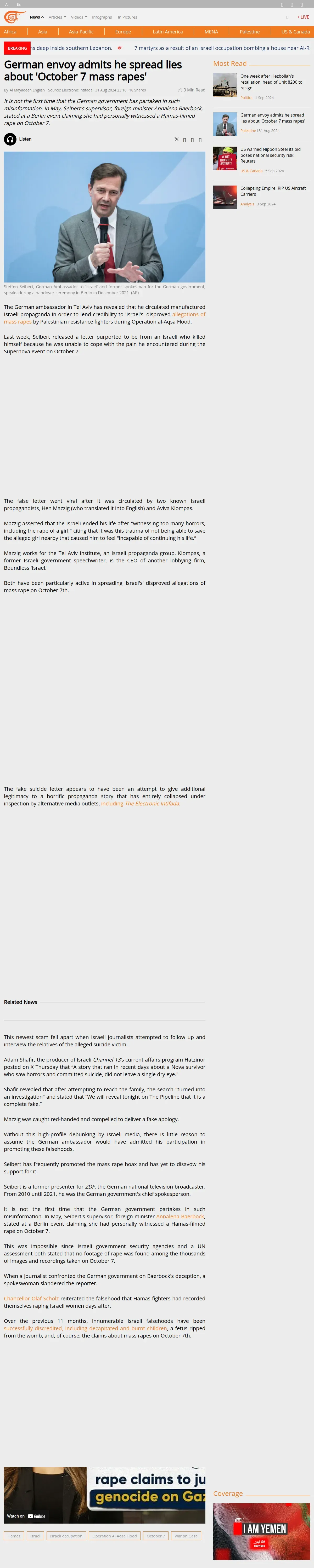 https://english.almayadeen.net:443/news/politics/german-envoy-admits-he-spread-lies-about--october-7-mass-rap