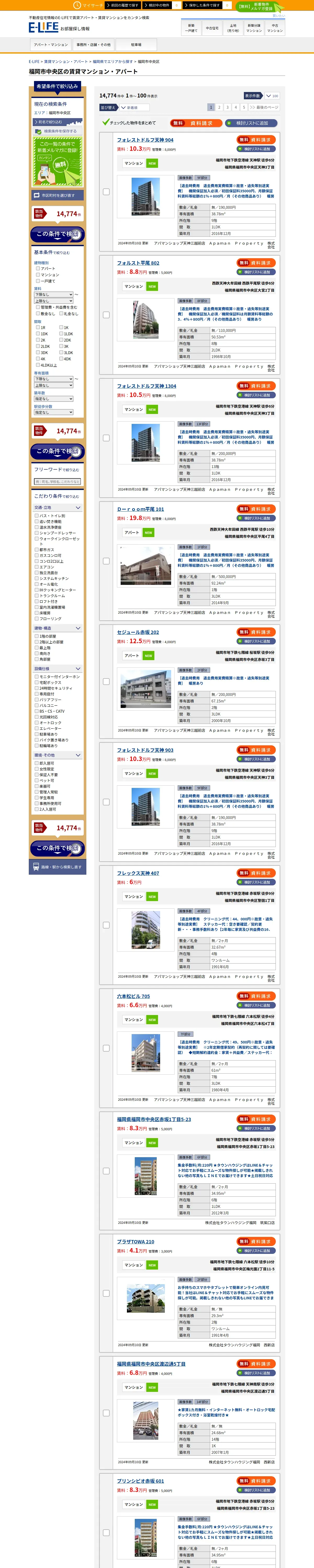 https://www.e-life.jp:443/chintai/apartment/area/fukuoka/fukuokashichuoku/1/