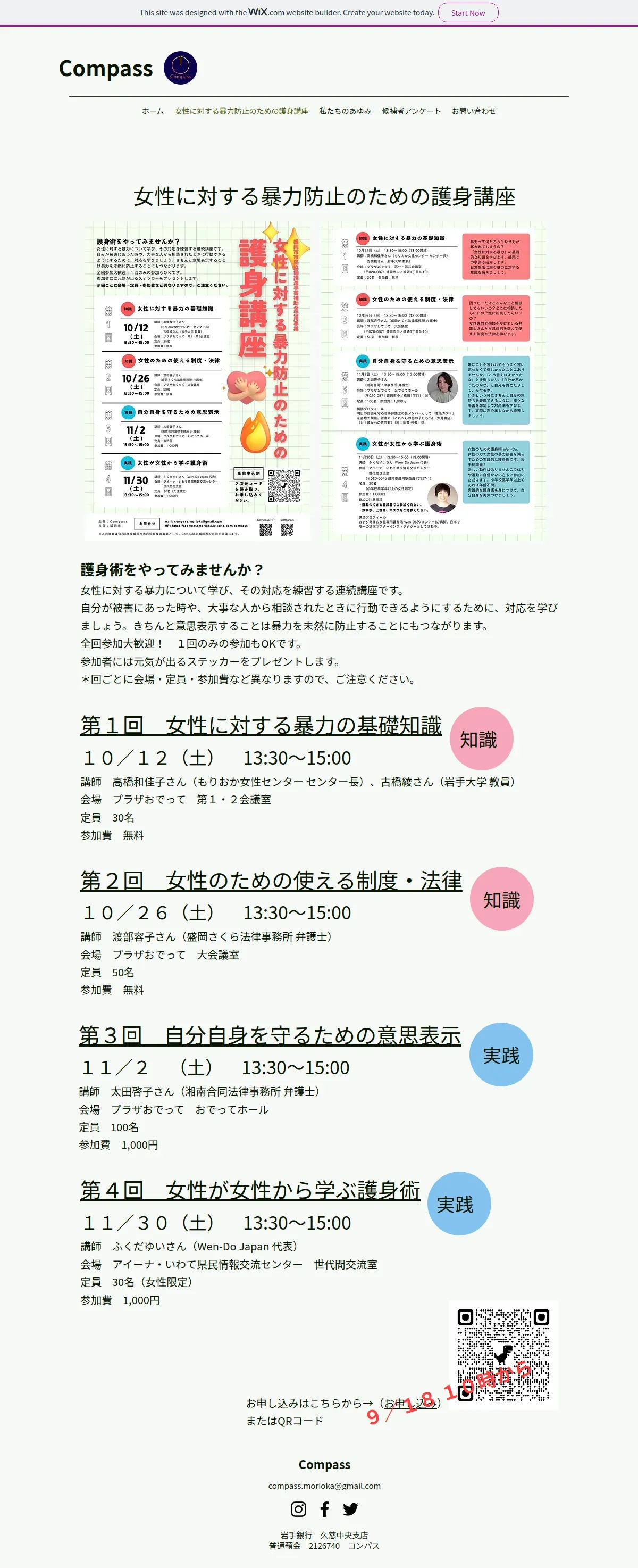 https://compassmorioka.wixsite.com:443/compass/%E5%A5%B3%E6%80%A7%E3%81%AE%E3%81%9F%E3%82%81%E3%81%AE%E6%9A%B4%E5%8A%9B%E9%98%B2%E6%AD%A2%E3%81%AE%E3%81%9F%E3%82%81%E3%81%AE%E8%AD%B7%E8%BA%AB%E8%AC%9B%E5%BA%A7