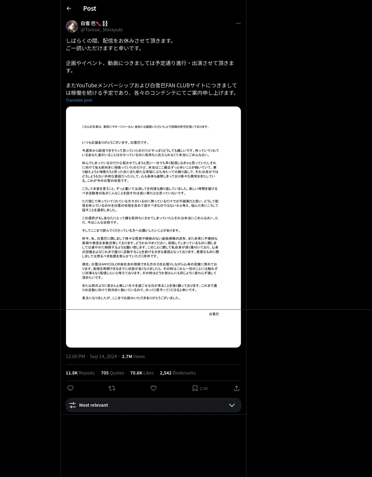 https://x.com:443/Tomoe_Shirayuki/status/1834789173259387229