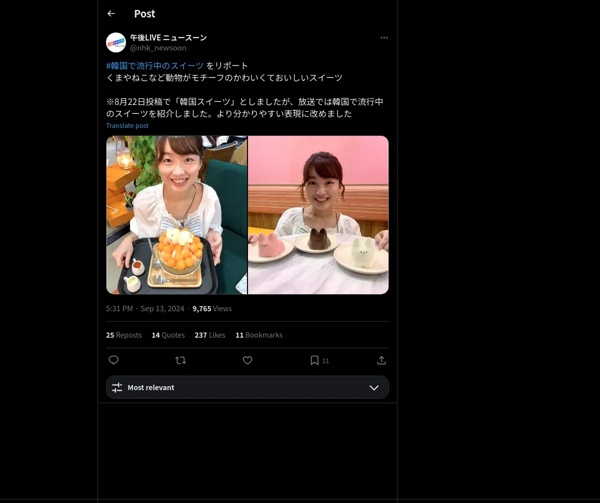 https://x.com:443/nhk_newsoon/status/1834510230799221119